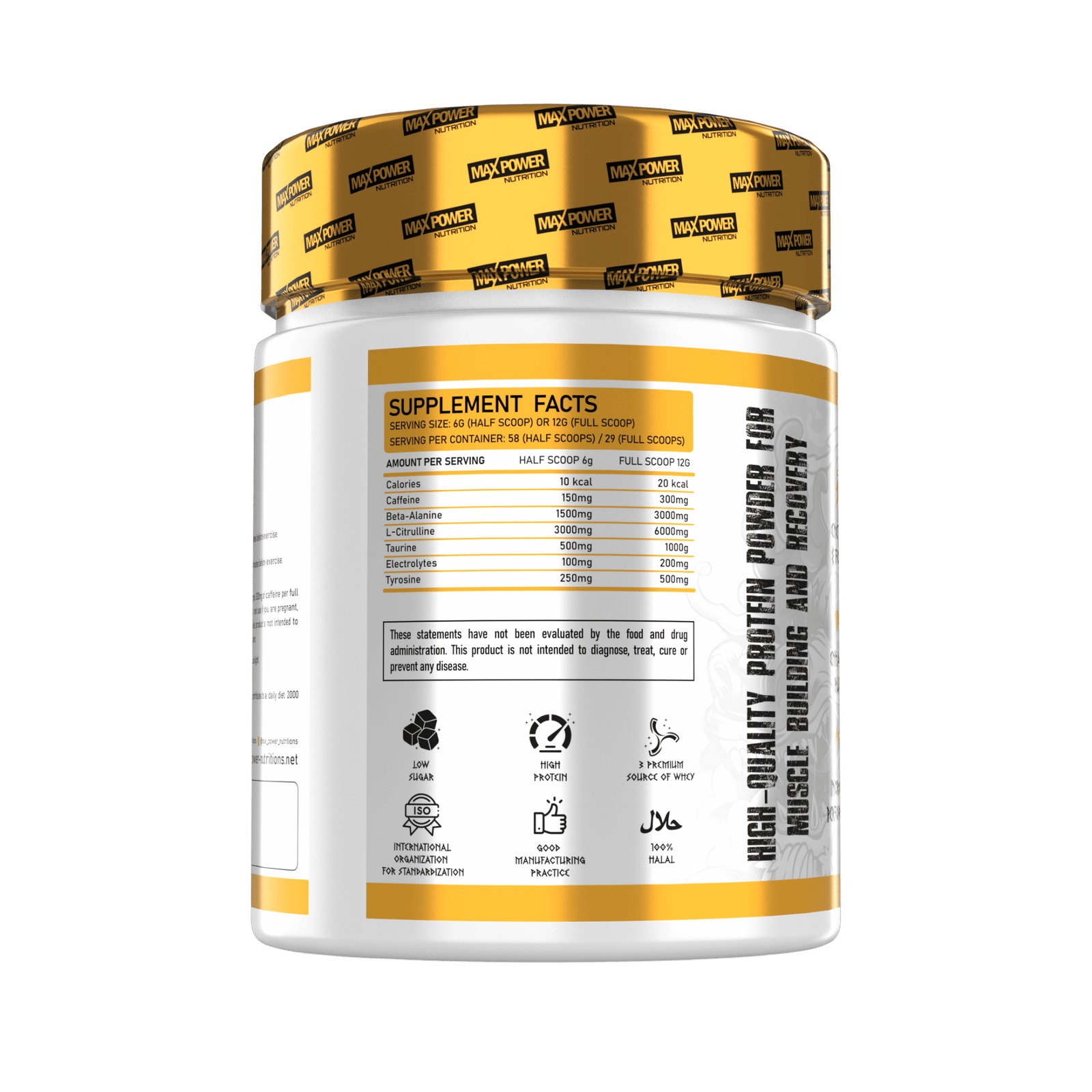 مُكمّل Gold Pre-Workout هو تركيبة تدريبية متطورة مصممة لرفع مستوى أدائك وطاقتك وتركيزك خلال كل تمرين. صُمم خصيصًا للرياضيين وهواة اللياقة البدنية، فهو يوفر مزيجًا قويًا من المكونات التي تساعدك على بذل جهد أكبر، والاستمرار لفترة أطول، والحفاظ على تركيزك الكامل.