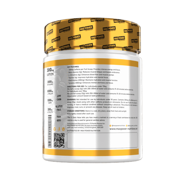 بفضل مكوناته التي تعزز تدفق الدم في العضلات، يُحسّن مُكمّل Gold Pre-Workout من كفاءة التمرين بشكل عام. سواء كنت تتدرب من أجل القوة أو التحمل أو بناء الجسم، فإن هذه التركيبة تساعدك على تحقيق أقصى استفادة من كل جلسة.
